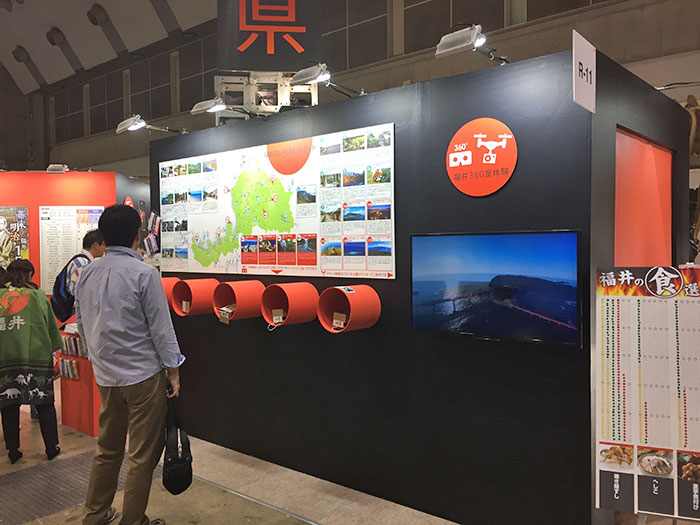 2017年9月に東京ビッグサイトで開催された、アジア最大級の旅の総合イベント「ツーリズムEXPOジャパン2017」。 福井県の旬の観光情報をVR映像やドローン映像、AR体験などで発信したり、焼き鯖寿司などの試食を行いました。