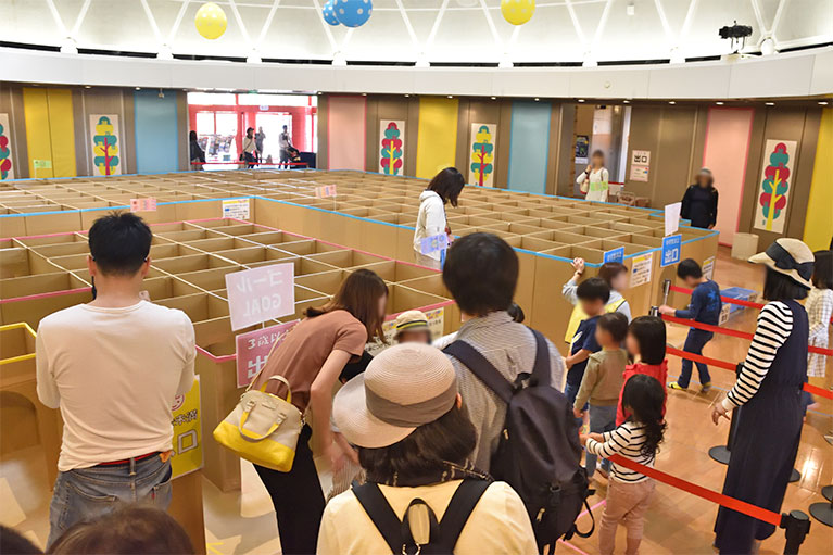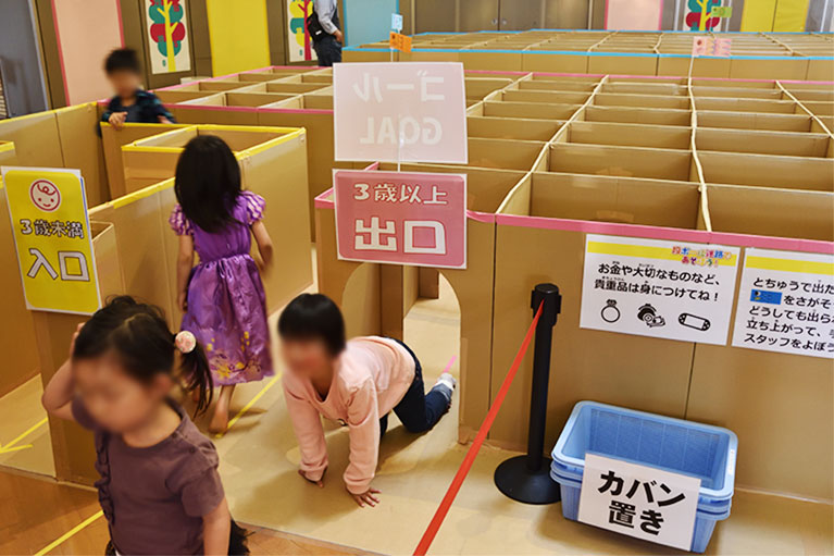 2019年4月27日から5月6日までの10連休に福井県児童科学館(エンゼルランドふくい)で開催した「段ボール迷路で遊ぼう!」 10m四方のスペースに段ボール約250個で組み立てた巨大迷路に3歳以下、3歳以上、小学生以上の3コースを用意。子供たちにダンボールの迷路を冒険して頂きました。